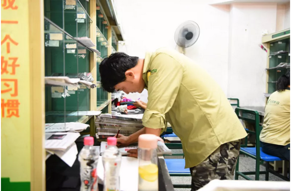 “平常每天清晨七點多就到投遞站分發(fā)報紙?,F在天太熱了,溫度太高,為避開高溫出班,我們提前到六點就到崗提前做好出班前的報紙分發(fā)工作。”投遞員其軍介紹說。“每天出班二次,上午七八點左右出班,趕在中午11點左右回班。下午二點多出班,當天郵件量多時,回班時間一直到下午六七點。”