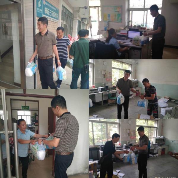 2018年7月20日,雙鴨山市郵政工會(huì)時(shí)洪軍主席帶領(lǐng)工會(huì)相關(guān)人員,冒著夏日炎炎酷暑到基層生產(chǎn)一線開展“關(guān)愛職工夏送清涼”活動(dòng),親切地慰問了在高溫下堅(jiān)守崗位的一線員工,為他們送去了綠豆糕、白糖、礦泉水、毛巾等消暑物品,把公司黨委、行政、工會(huì)的關(guān)懷送到一線。慰問組先后來到了市包裹投遞局、網(wǎng)運(yùn)分揀轉(zhuǎn)運(yùn)中心、嶺東區(qū)分公司、寶山區(qū)分公司和四方臺(tái)區(qū)分公司,時(shí)副總經(jīng)理還深入了解員工的生產(chǎn)生活環(huán)境,高溫勞動(dòng)保護(hù)等情況,囑咐員工們?cè)诟邷靥鞖庀鹿ぷ饕欢ㄒ⒁庾龊梅朗罱禍氐淖陨戆踩ぷ鳌?/p>