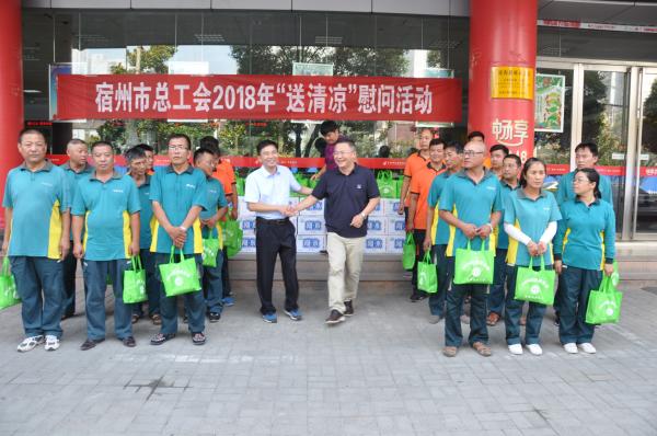 炎炎夏日,驕陽似火。入伏以來持續(xù)高溫,連續(xù)酷暑的天氣給奮戰(zhàn)一線的職工們帶來“炙熱”的考驗,也時刻牽掛著各級領(lǐng)導(dǎo)的心。8月3日上午,宿州市總工會朱主席帶領(lǐng)市總工會相關(guān)人員冒著酷暑到宿州市郵政公司慰問投遞一線職工,并把毛巾、白糖、香皂、花露水、藿香正氣膠囊、風(fēng)油精、洗發(fā)露、礦泉水等防暑降溫用品送到一線員工手上,親切叮囑大家做好高溫期間的安全生產(chǎn)和防暑降溫工作,確保人身安全。郭大江副總經(jīng)理代表郵政公司黨委對宿州市總工會深入到郵政公司慰問一線職工表示感謝,同時要求工會和各有關(guān)部門把關(guān)愛職工落到實處。宿州郵政工會聯(lián)合有關(guān)部門根據(jù)高溫特點合理安排了班次,并多次給每個投遞人員配發(fā)急救藥品。員工們也深刻感受到了企業(yè)與領(lǐng)導(dǎo)的關(guān)愛,稱這是酷暑中一股清涼的暖流,讓人感動不已。
