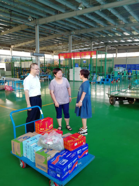 近期,伏天高溫,熱浪襲人,郵通公司領(lǐng)導(dǎo)班子成員分別赴大樓物業(yè)部、國際郵件互換局、電商園物業(yè)部、智能倉儲中心,對堅守在工作崗位的一線工作人員進行慰問,堅持以人為本,把關(guān)心職工工作落在實處。 7月27日上午,郵通公司領(lǐng)導(dǎo)赴大樓物業(yè)部,為大樓物業(yè)部勤懇辛勞的員工送去防暑降溫用品并與員工深入交談,了解員工的工作狀態(tài)及精神面貌及員工生活工作中存在的問題,強調(diào)了安全生產(chǎn)、提高消防安全意識的重要性,并叮囑大家專注工作的同時注意勞逸結(jié)合,做好防暑降溫措施,確保身體健康。 8月1日上午,郵通公司領(lǐng)導(dǎo)赴國際郵件互換局、電商園物業(yè)、智能倉儲中心進行高溫慰問,為奮斗在生產(chǎn)一線的員工送去親切問候及綠豆、砂糖、飲料、藥品等防暑降溫用品。領(lǐng)導(dǎo)班子向不懼高溫,奮斗在工作崗位的員工表示慰問及感謝,強調(diào)防暑降溫、安全生產(chǎn)的重要性,要求員工做好防護工作,強化安全措施,確保安全度夏。