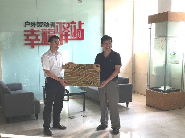 7月31日下午,蕪湖市總工會副主席傅松一行來到蕪湖市郵政公司北京路營業(yè)廳,為蕪湖郵政“幸福驛站”授牌。市郵政公司副總經(jīng)理賈宇明接牌。自2016年全市開設(shè)“幸福驛站”窗口以來,市區(qū)共有三家窗口單位獲評“幸福驛站”,其中兩家窗口單位獲省總工會首次頒發(fā)的“幸福驛站”銅牌,蕪湖郵政是其中之一。市總工會副主席傅松對蕪湖郵政“幸福驛站”的便民服務(wù)工作給予了充分肯定。近年來,蕪湖郵政積極開展社會公益活動,向環(huán)衛(wèi)工人、快遞員、志愿者等廣大戶外勞動者無償提供飲用水、休息座椅、報(bào)刊閱讀等服務(wù),為他們提供一個驅(qū)寒避暑,遮風(fēng)擋雨的溫馨場所。讓他們熱了可以在“驛站”納涼,冷了可以去“驛站”取暖,累了可以去“驛站”休息,渴了可以去“驛站”喝水,讓“幸福驛站”成為戶外勞動者臨時的“家”。
