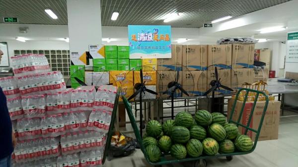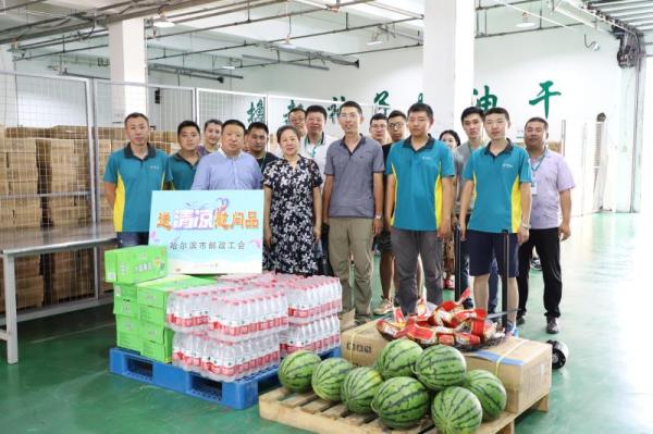 近日,哈市迎來持續(xù)高溫天氣,驕陽考驗著每一位堅守在一線崗位的職工,更牽動著市公司領(lǐng)導(dǎo)們的心。7月30日,哈爾濱市郵政工會王毅主席、徐海濱副主席帶隊組成的慰問團隊先后對六個區(qū)分公司、函件廣告局商函制作中心、包裹業(yè)務(wù)局電商運營中心、報刊發(fā)行局等15家基層單位奮戰(zhàn)在一線的職工進行了親切的慰問,并送上了防暑降溫用品:西瓜、茶葉、礦泉水、飲料、風(fēng)扇、電水壺等。