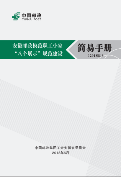 近日,安徽省郵政工會(huì)印發(fā)了《安徽郵政模范職工小家“八個(gè)展示”規(guī)范建設(shè)簡(jiǎn)易手冊(cè)(2018版)》。2017年底,省郵政工會(huì)按照省分公司黨組的要求,堅(jiān)持在提質(zhì)提效上下功夫,按照實(shí)用、規(guī)范、有品位的原則,提出了模范職工小家建設(shè)“八個(gè)展示”新標(biāo)準(zhǔn),旨在進(jìn)一步提升建家品質(zhì),讓職工有更多地獲得感、幸福感、自豪感。為此,省郵政工會(huì)率先在宿州苗安、六安施橋、安慶天柱山等3個(gè)支局,按照“八個(gè)展示”要求進(jìn)行全面提檔升級(jí),并被中國(guó)郵政集團(tuán)工會(huì)授予“全國(guó)郵政系統(tǒng)模范職工小家”稱號(hào)。本冊(cè)旨在進(jìn)一步固化“八個(gè)展示”的建家新標(biāo)準(zhǔn),供基層各單位參考執(zhí)行。此舉,是安徽郵政進(jìn)一步夯實(shí)建家成果,提升建家品質(zhì)的重要舉措之一,年底還將組織開(kāi)展對(duì)基層建家工作的互查,督導(dǎo)各單位按照要求和新標(biāo)準(zhǔn)推進(jìn)建家工作。