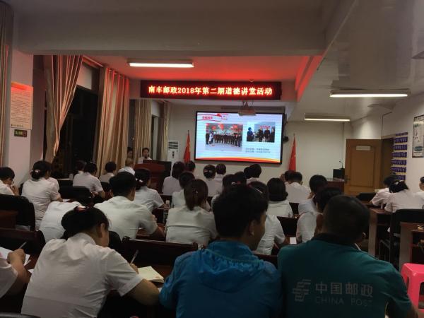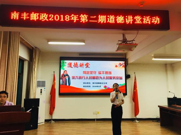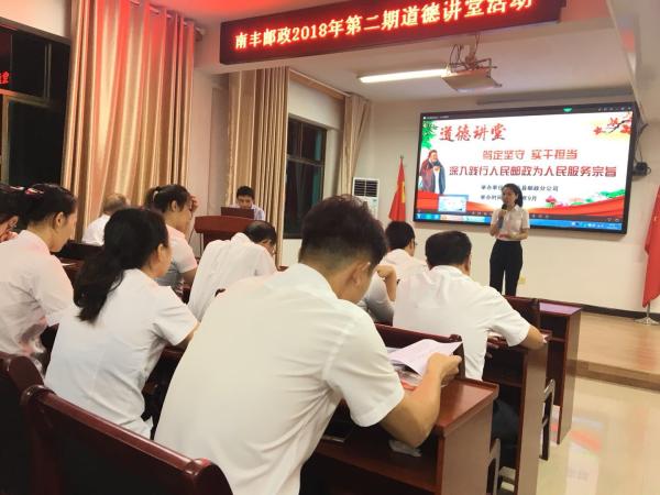 為深入貫徹習(xí)近平新時代中國特色社會主義思想和黨的十九大精神,扎實推進(jìn)社會主義核心價值觀,9月11日,南豐縣分公司舉辦2018年第二期道德講堂活動,縣分公司全體員工參加了活動。此次活動旨在用勞模先進(jìn)榜樣人物,教導(dǎo)全體員工要深入踐行人民郵政為人民服務(wù)的宗旨,大力弘揚郵政人愛崗敬業(yè)、篤定堅守、實干擔(dān)當(dāng)?shù)膬?yōu)良作風(fēng),提升干部職工的道德素養(yǎng)和文明程度,為南豐郵政品質(zhì)發(fā)展凝聚士氣。