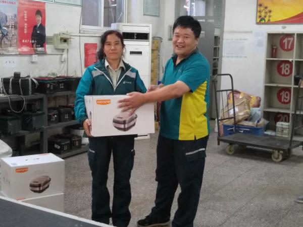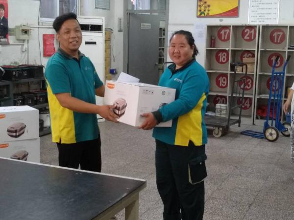 區(qū)郵政工會根據(jù)競賽方案,及時為各投遞部配發(fā)了第一階段勞動競賽獎品,昨日已經(jīng)全部發(fā)放到位。今天一早,各投遞部紛紛召開班前會,對本投遞部收訂優(yōu)秀道段進行獎勵。拿到收訂階段獎品的投遞員都非常高興。