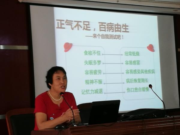 本次講座是聘請有30多年臨床、教學(xué)經(jīng)驗的陜西中醫(yī)學(xué)院附屬醫(yī)院胡萍主任醫(yī)師,以流動課堂形式到基層為職工進(jìn)行健康知識講座,授課內(nèi)容包括中醫(yī)四季養(yǎng)生、女性心理調(diào)適、女性美容美顏、和“兩癌”的科普及預(yù)防等健康知識,并進(jìn)行現(xiàn)場咨詢答疑。胡醫(yī)師強(qiáng)調(diào)要樹立預(yù)防為主,治療為輔的健康觀念,進(jìn)一步增強(qiáng)自我保護(hù)意識,多預(yù)防、常體檢、早發(fā)現(xiàn)。健康養(yǎng)生講座是中華全國總工會發(fā)起的“關(guān)愛行動”的一部分,是工會組織服務(wù)職工、提升職工身體素質(zhì)的具體體現(xiàn),得到了廣大職工的歡迎和認(rèn)可。(河北省郵政工會)