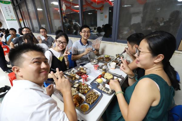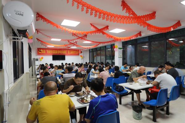 下午下班后,員工們成群結(jié)隊,滿面笑容地走向食堂。食堂張燈結(jié)彩,人聲鼎沸,好不熱鬧!琳瑯滿目的美食令人應(yīng)接不暇:有瑞金牛肉湯、石城芋餃、寧都肉丸等贛南特色美食;有滋味小龍蝦、鹵味翅膀腳、麻辣香鍋、榴蓮酥、花生豆粑、芋包、薯包等香酥系列美食;有薏米芡實粥、八寶粥、奶黃包等養(yǎng)生美食;有圣女果、香蕉、水果黃瓜、冬棗等水果美食;還有各種飲料……美食品種豐富多彩,讓人眼花繚亂;誘人的香味撲鼻而來,讓人滿口生津。員工們喜氣洋洋,吃著笑著聊著,沉浸在美味的歡樂之中。