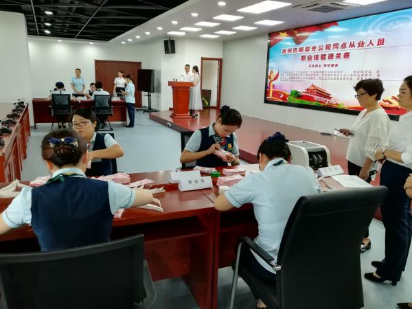 為檢驗網(wǎng)點“技能大練兵”以及區(qū)縣公司初賽組織成效,全力備戰(zhàn)全市網(wǎng)點從業(yè)人員職業(yè)技能大賽決賽,近日,池州市郵政分公司、工會利用下午、晚上時間分別組織全市“擇優(yōu)推薦組”、“隨機抽簽組”兩個組別,共八支代表隊、50余名隊員齊聚于巿分公司多功能廳內(nèi)參加通關(guān)比賽,一展郵政健兒風(fēng)采。通關(guān)賽以電視電話會議的形式同步轉(zhuǎn)播至縣分公司,令不能親臨現(xiàn)場的伙伴們共同感受精彩激烈的比賽氛圍,大家集體以特殊方式提前歡度中秋佳節(jié)。