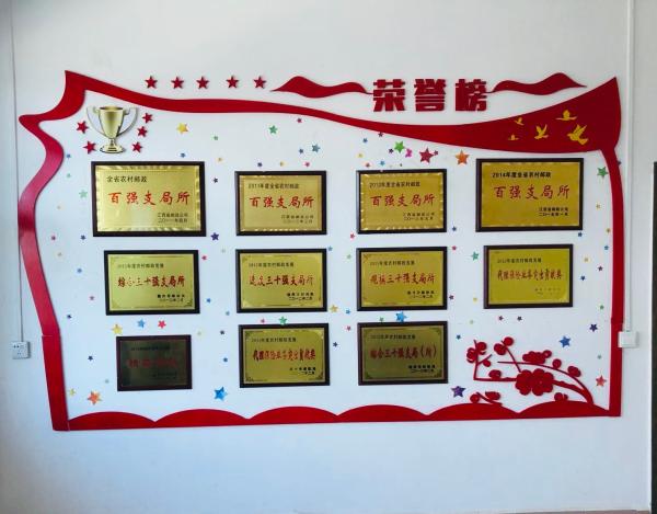 “功夫不負有心人”。經(jīng)過全體員工的努力,銀坑郵政支局成績層出不窮,榮譽掛滿墻壁:2011年,榮獲全省郵政農(nóng)村百強支局所、全市郵政農(nóng)村規(guī)模三十強支局所、速度三十強支局所、短信業(yè)務突出貢獻獎;2012年,榮獲全省郵政農(nóng)村十強支局所、全市郵政農(nóng)村綜合三十強支局所、代理保險突出貢獻獎和儲蓄業(yè)務突出貢獻獎;2013年,榮獲全省郵政農(nóng)村百強支局所、全市郵政農(nóng)村綜合三十強支局所、速度三十強支局所;2014年,榮獲全省郵政農(nóng)村十強支局所;2016榮獲全省模范職工小家榮譽稱號。(江西省郵政工會)