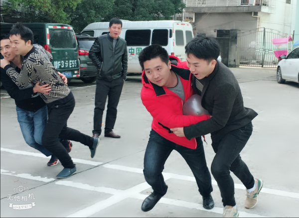 當(dāng)天下午2點,活動正式開始?!皭鄣谋ПА眱扇藶橐魂牐瑑扇嘶ハ鄵肀阎袣馇?,每兩隊進(jìn)行比拼,要求懷中氣球不能掉落,不能擠爆,不能用手抓氣球,先帶球過線的一隊獲勝。活動不但需要員工互相控制力道、控制平衡,更是考驗各位員工的團(tuán)隊協(xié)作和配合。