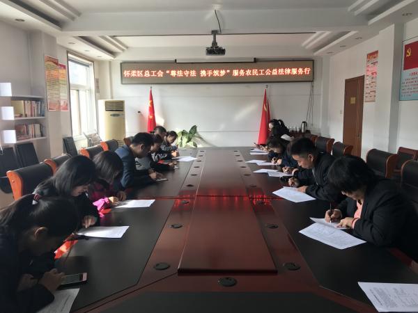為深入貫徹落實北京市總工會《關(guān)于開展“尊法守法·攜手筑夢”服務(wù)農(nóng)民工公益法律服務(wù)行動的通知》精神,進(jìn)一步做好新形勢下為農(nóng)民工法律服務(wù)工作,北京郵政懷柔區(qū)分公司工會于11月12日組織部分職工開展“尊法守法·攜手筑夢”服務(wù)農(nóng)民工公益法律知識答題活動。