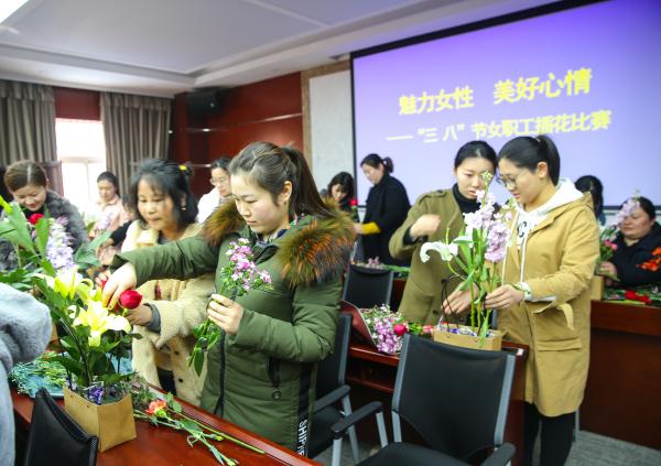 為緩解女職工的工作和生活壓力,增強女職工的節(jié)日幸福感,使女職工們過一個快樂而充實的節(jié)日。3月6日,市分公司工會舉辦“魅力女性,美好心情”三八節(jié)女職工插花比賽,6個基層分會36名員工參加。 整個比賽過程分兩個環(huán)節(jié)進行,首先是插花技能培訓,邀請插花專家對插花的藝術(shù)技巧、顏色搭配、整體造型、枝葉修剪、立意體現(xiàn)等進行了授課,并現(xiàn)場演示插花的技巧。 培訓結(jié)束后,以分會為單位,2人一組進行比賽,女職工充分發(fā)揮自己的想象力和創(chuàng)造力,把各色花朵和枝葉搭配組合,伴著花香大家捧著自已親手制作的作品,反復欣賞,反復修改,臉上漾溢著幸福感和成就感。 經(jīng)過1小時緊張而快樂插花比賽后,專家對各組插花作品進行評比,參賽人員紛紛捧著自己的作品拍照,并表示這個插花比賽辦得很好,提高了女職工的審美,大家通過相互交流,不僅緩解了工作和生活壓力,還學到插花藝術(shù)。 閃勇主席為獲前三名的選手頒發(fā)了獎金。