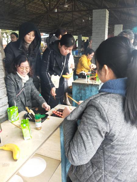 燒烤進(jìn)行中,大家吃得很開心,烤香蕉,烤雞翅,烤肉,烤香腸,都好香呀!她們邊燒烤邊聊天,大家敞開心扉,分享快樂!