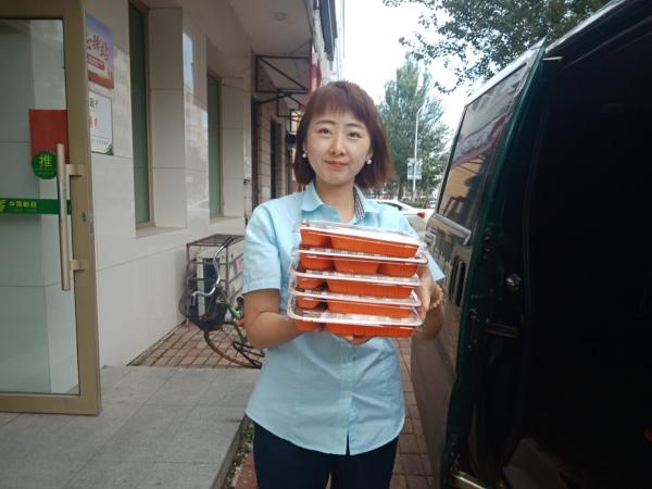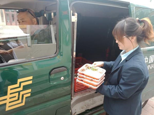 每天中午11:00時(shí),一輛郵政面包車準(zhǔn)時(shí)從郵政大院出發(fā),駛向各個(gè)郵政網(wǎng)點(diǎn),用一個(gè)小時(shí)的時(shí)間,為市區(qū)郵政十二個(gè)網(wǎng)點(diǎn)員工送去盒裝飯菜。網(wǎng)點(diǎn)的同事一聽(tīng)汽車?yán)嚷?,就?huì)打開(kāi)安排人小心打開(kāi)門禁,高興地出來(lái)迎接熱騰騰的飯菜。為了防止網(wǎng)點(diǎn)員工不夠吃,每個(gè)網(wǎng)點(diǎn)預(yù)訂兩份以上的飯就額外送兩盒飯菜,讓大家吃得飽飽的。