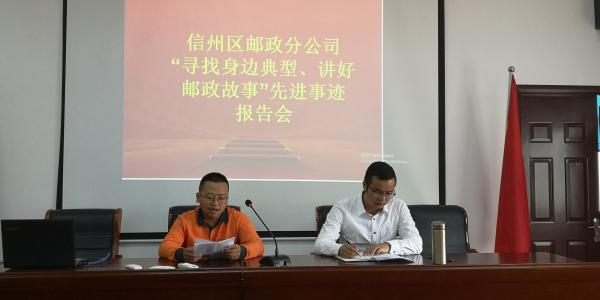 10月23日下午,為深入推進(jìn)“不忘初心 牢記使命”主題教育,尋找和學(xué)習(xí)宣傳典型,講好郵政故事,挖掘典型的先進(jìn)事跡和精神內(nèi)涵,引導(dǎo)廣大員工立標(biāo)、對標(biāo)、學(xué)標(biāo),提升干事創(chuàng)業(yè)的使命感和責(zé)任感,上饒市信州區(qū)郵政工會組織開展了“尋找身邊典型、講好郵政故事”個人先進(jìn)事跡宣講報告會。區(qū)分公司領(lǐng)導(dǎo)班子、中層干部、支局所長和全體機關(guān)人員參加了報告會。