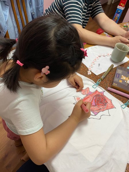 參加活動的來自一線崗位的21個員工家庭,子女年齡在5至14歲之間。活動內(nèi)容涉及創(chuàng)作、彩繪、手工藝制作等。普陀區(qū)分公司工會前期籌備,細(xì)心梳理了員工和子女信息??紤]了多種設(shè)計題材及豐富素材,以滿足不同年齡孩子的喜好,提供個性化制作手工材料包進行拓展創(chuàng)意。由于防控疫情仍需要做到安全防護,活動安排采取5月28日線下主圖繪制。5月31日參賽員工在家中引導(dǎo)自己的子女,進行創(chuàng)意T恤的手工裝飾品制作環(huán)節(jié)。6月1日線上視頻互動等形式分別完成。