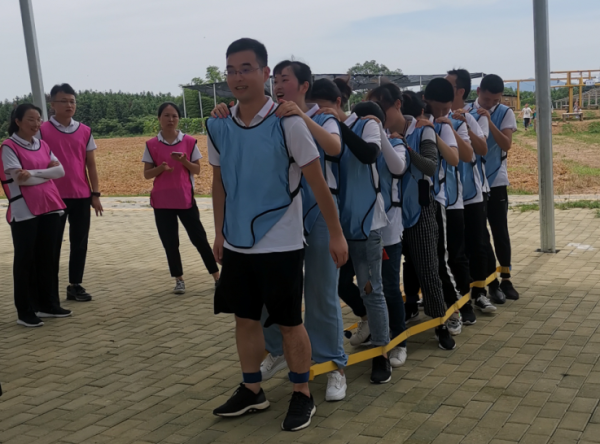 當(dāng)天早上9點(diǎn),大家統(tǒng)一乘車(chē)前往羅坊錦園拓展基地。到達(dá)基地后,在教官的指揮下,大家踩著歡快的節(jié)拍開(kāi)始了活動(dòng)前的熱身舞。各個(gè)新建團(tuán)隊(duì)按照教官的指令開(kāi)始了團(tuán)隊(duì)展示活動(dòng)。展示結(jié)束,各隊(duì)成員團(tuán)結(jié)一致,通力合作,共同完成了“毛毛蟲(chóng)”、“同舟共濟(jì)”、“十人九足”、“千里傳珠”等團(tuán)建項(xiàng)目。