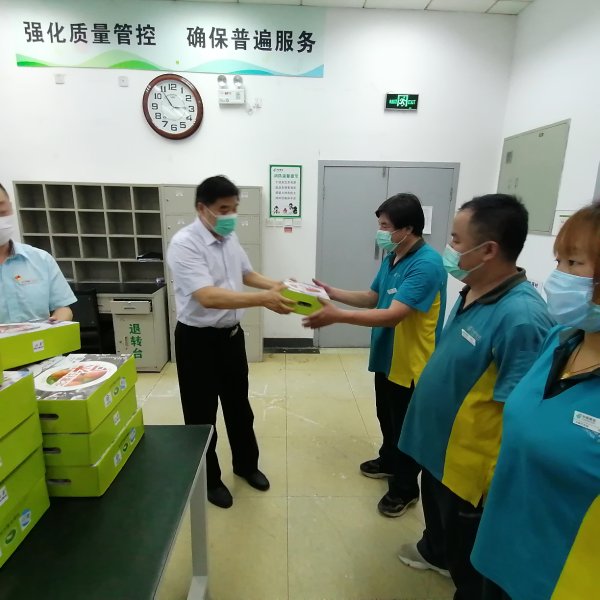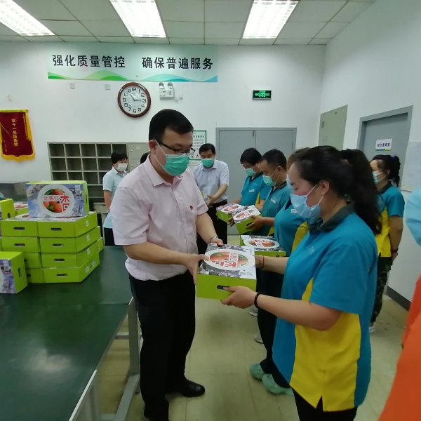 夏至已至,天氣漸熱。6月22日,一箱箱承載著朝陽郵政工會端午祝福與疫情慰問的北寨紅杏來到了職工手中。朝陽區(qū)分公司領導親自將這些紅杏發(fā)到了一線職工手中,一方面表達了企業(yè)對于自疫情以來一直默默付出并堅守崗位的一線職工的感激之情,同時再三囑咐大家,在夏季時節(jié)一定要注意各方面的生產安全事項,并強調了今夏的“三防”重點工作——防疫、防暑、防汛,時刻將安全擺在第一位,以此確保經營工作順利開展。