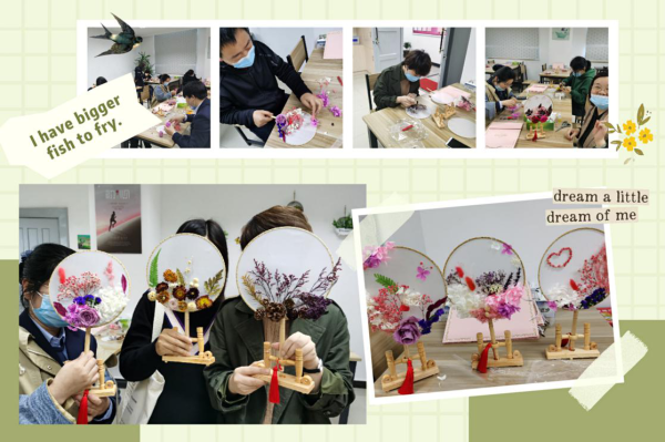 在活動開始的時候,工會干事把準(zhǔn)備好的材料向小組成員展示,并且把自己提前做好的作品供參考與欣賞,激起了大家對手工DIY制作團(tuán)扇的好奇心。員工們選定自己要制作的團(tuán)扇后,充分發(fā)揮豐富的想象力,制作屬于自己的團(tuán)扇,并紛紛在親手制作的作品上留下屬于自己的獨特印記,比如說愛心、蝴蝶等等,讓這次手工制作活動又增加了一份儀式感。