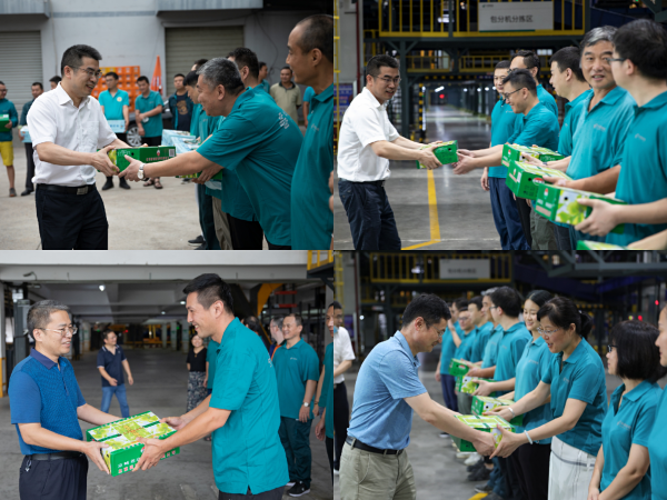 入伏以來(lái),連日高溫多雨,7月22日,時(shí)值大暑。合肥郵區(qū)中心局黨委書(shū)記、總經(jīng)理錢(qián)志雄帶領(lǐng)局班子成員及相關(guān)部門(mén)負(fù)責(zé)人一行深入生產(chǎn)單位親切慰問(wèn)堅(jiān)守在暑期防汛一線(xiàn)的職工,為大家送上酸梅湯、蘇打水等防暑降溫飲品。