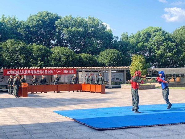 隨后,雙方進行了才藝展示。武警支隊官兵帶領大家參觀武裝軍隊常用裝備,并為慰問組表演了擒敵演示《武術魂》。為了進一步加深軍民魚水情誼,撫州市郵政營業(yè)局與武警支隊還準備了以“軍營綠 郵政綠 共促綠色發(fā)展,軍民情 魚水情 共度建軍佳節(jié)”為主題的文藝匯演。通過舞蹈表演,詩歌朗誦,歌曲串燒和一系列小游戲,現(xiàn)場氣氛濃厚。最后,督訓師揭嫣為全體人員帶來一段金融詐騙知識的講解,更加進一步密切軍民關系,加強交流互動,積極推動工作再上新臺階。