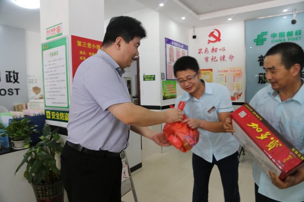 在龍虎山輕型網(wǎng)點(diǎn),李軍親切詢問(wèn)基層員工工作和生活中遇到的困難,詳細(xì)了解網(wǎng)點(diǎn)各項(xiàng)指標(biāo)完成情況,并囑咐大家外拓時(shí)要注意做好防暑降溫工作。
