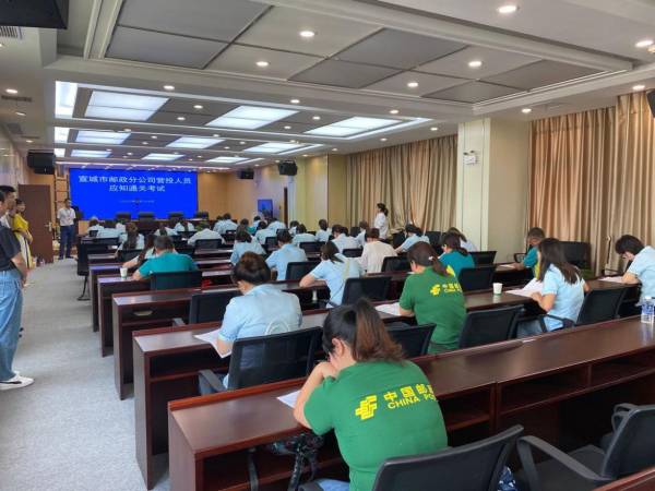 2020年7月26日,宣城市分公司組織全市營(yíng)投人員在全市七個(gè)考區(qū)同時(shí)舉行普服應(yīng)知應(yīng)會(huì)通關(guān)考試。市郵政管理局領(lǐng)導(dǎo)和市分公司分管副總在主考區(qū)巡考,并通過會(huì)議視頻系統(tǒng)對(duì)六個(gè)分考區(qū)進(jìn)行巡考。市郵管局行管科負(fù)責(zé)人、市公司服務(wù)質(zhì)量部負(fù)責(zé)人赴涇縣分考區(qū)進(jìn)行了現(xiàn)場(chǎng)巡考。