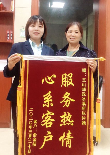 在一次電訪中,她得知有個退休的老師由于子女不在家,年前又因騎電瓶車摔到了腳,不方便外出購買生活用品。張仲婧就給客戶帶去了自己從超市購買的面條大米以及果蔬。修養(yǎng)一段時間腳稍微好點后,這位女老師便抓來了家里的老母雞,對她表示感謝,還熱淚盈眶的說:“家里孩子不在家,小張就像我的孩子一樣關(guān)心我、幫助我,真的太暖心了”。老師的謝意被她婉拒了,并向客戶解釋了郵政的政策制度,關(guān)心每一位客戶都是她應(yīng)該做的??蛻魹榱烁兄x她,再次送上了錦旗。一個月后,該客戶上饒銀行50萬元定期到期,立馬聯(lián)系了張仲婧要把錢轉(zhuǎn)到了郵政,她親切的接待了客戶,了解客戶所需,利用自己的專業(yè)知識進行了資產(chǎn)配置,客戶表示非常認同她配置的方案,購買了30萬理財,20萬保險。老人說:“小張?zhí)幪帪槲铱紤],錢存在你這里我放心?!本瓦@樣她為郵政又帶來了一個忠實的客戶。
