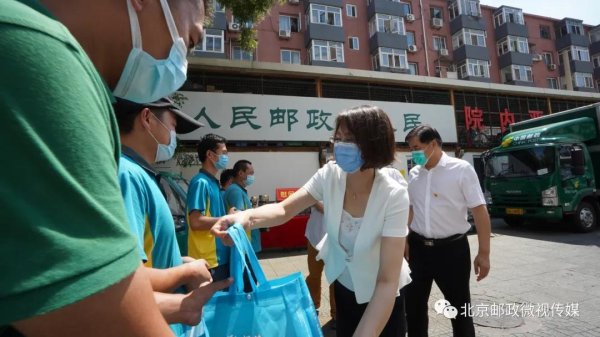 王艷主席對(duì)烈日下始終堅(jiān)守崗位、辛勤勞動(dòng)的一線投遞員們表示感謝,并親切叮囑大家要做好防暑降溫工作,多注意飲食和休息,遵守各項(xiàng)安全生產(chǎn)規(guī)定,繼續(xù)做好個(gè)人防護(hù),確保勞動(dòng)安全和身體健康,隨后將裝有夏季養(yǎng)生谷物的清涼包以及印有中國(guó)郵政標(biāo)識(shí)的大容量保溫壺送到投遞員們手上,在炎炎夏日讓大家深深感受到組織的關(guān)懷和工會(huì)大家庭的關(guān)愛。