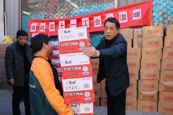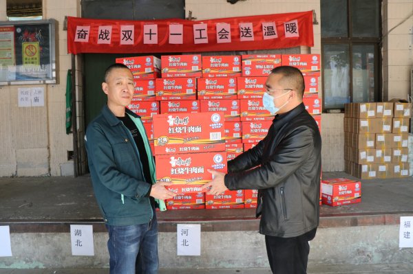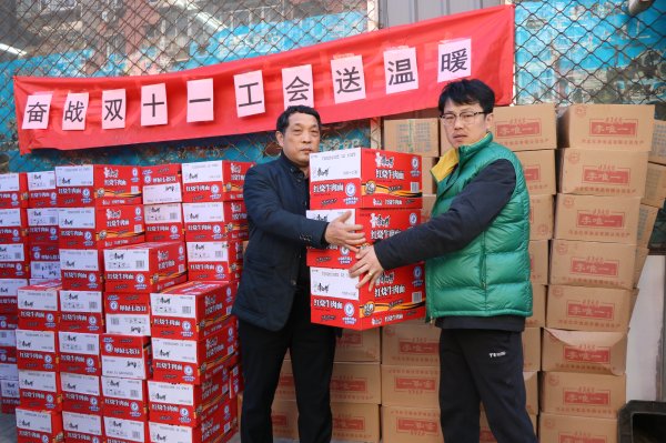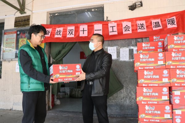 一是領(lǐng)導(dǎo)深入一線,慰問(wèn)一線投遞員。11月3日,區(qū)分公司總經(jīng)理李宏彥、工會(huì)主席許玉偉前往一線,將1406袋餃子、703箱方便面紛紛送到了703名投遞員手中,為旺季生產(chǎn)的職工送上了企業(yè)的溫暖和關(guān)愛(ài),現(xiàn)場(chǎng)與遞員們親切交談,詢問(wèn)他們的生活、工作等情況,提醒他們?cè)诠ぷ鞯耐瑫r(shí)要注意按時(shí)吃飯,調(diào)整作息時(shí)間,避免疲勞工作,確保勞逸結(jié)合。