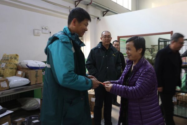 11月11日,遼寧省分公司副總經(jīng)理、工會主席蘇沙沙、副主席項連文一行,在撫順市分公司張揚(yáng)總經(jīng)理、李哲勇副總經(jīng)理的陪同下,先后來到撫順縣后安郵政支局、撫順縣石文郵政支局、順城攬投部、城東攬投部和市分揀轉(zhuǎn)運(yùn)中心,代表省公司和省會向旺季生產(chǎn)期間奮戰(zhàn)在一線的員工表示感謝和親切慰問,并向網(wǎng)點(diǎn)贈送了慰問金和慰問品。