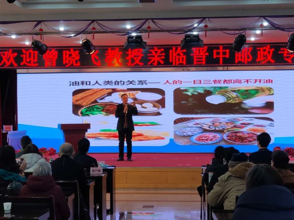 12月18日上午,晉中市郵政工會在九樓會議室舉辦《脂肪酸與人類健康》專題科普會,郵政大客戶及市分本部各單位員工共計150余人聆聽講座。本次活動特別聘請清華大學(xué)客座教授、中國營養(yǎng)聯(lián)盟專家委員會副主任委員——曾曉飛教授現(xiàn)場授課,市分李榮龍副總經(jīng)理為本次講座致辭,他指出,擁有健康才擁有人生最大的財富。晉中郵政作為服務(wù)地方民生的國有企業(yè),充分發(fā)揮行業(yè)自身優(yōu)勢,在社會、在員工中廣泛開展健康送醫(yī)系列活動,得到了社會各界的廣泛認(rèn)可和廣大職工的一致好評。希望通過曾教授的講座,讓更多的社會大眾、更多的郵政職工掌握健康知識、科學(xué)保養(yǎng)身體,擁有健康人生!曾曉飛教授用通俗易懂的語言,從脂肪酸的基本知識、脂肪酸與人類健康的關(guān)系、科學(xué)用油的重要性等方面進(jìn)行了細(xì)致講解,讓現(xiàn)場的觀眾受益匪淺。本次活動的開展,充分體現(xiàn)了晉中郵政情系萬家、服務(wù)社會的國企擔(dān)當(dāng),更加彰顯了晉中郵政以人為本、關(guān)愛員工的大愛情懷!