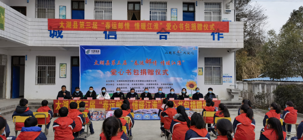 1月20日,太湖縣分公司聯(lián)合太湖縣總工會(huì)、文明辦等單位在太湖寺前鎮(zhèn)羅溪小學(xué)開(kāi)展了第三屆“春運(yùn)郵情 情暖江淮”愛(ài)心捐贈(zèng)活動(dòng),為100余名貧困學(xué)生送去了愛(ài)心書包。