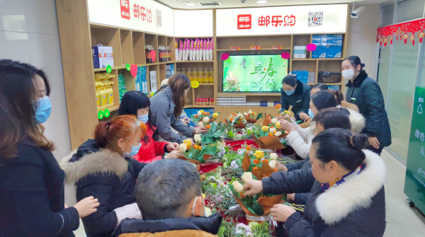 2月3日立春之際,重慶市渝中區(qū)分公司大溪溝郵政所,為做好“二十四節(jié)氣”郵政客戶維護工作,結(jié)合渝中城市特點和實際需求舉辦“以春之名,相約花開”立春客戶聯(lián)誼活動?;顒友埢ㄋ?yán)蠋煬F(xiàn)場講解插花藝術(shù),并對大家進行培訓(xùn),帶領(lǐng)客戶親自體驗。面對自己的勞動成果,客戶笑容滿面,紛紛合影留念,后期網(wǎng)點還將把活動照片上墻,留下大家的美好瞬間?;顒舆M一步拉近了郵政與客戶的距離,增強了客戶粘黏性。