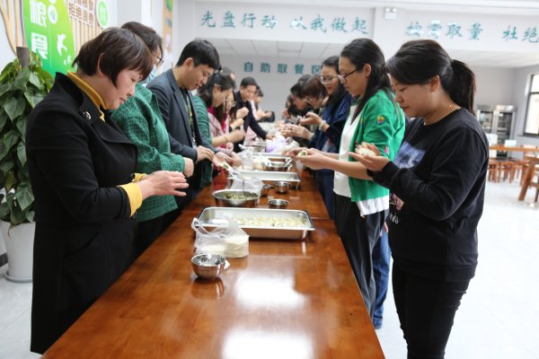 按照活動安排,下午15時,30多位餃子成員摩拳擦掌齊聚食堂,分工協(xié)作,有人和面、有人拌餡,有人包褶,歡天喜地笑聲不斷,還不時揶揄一下身邊的初學(xué)者,那些初學(xué)者在“高人”的指導(dǎo)下沒多久就成了一個個熟練的”生產(chǎn)者”。在大伙的共同努力下,900個獨(dú)具個性的餃子陸續(xù)送到熱騰騰的大鍋里,大伙迫不及待的品嘗自己親手包的餃子,雖然大小形狀各異,有的還炸開了皮,但一點(diǎn)都不影響吃餃子的快樂。