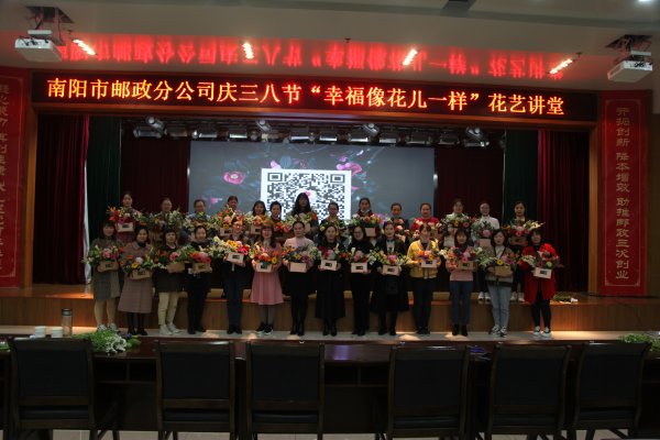 為慶?!叭恕眹H勞動婦女節(jié),豐富女職工精神文化生活,展示南陽郵政女員工良好的精神風貌,3月5日下午,南陽市郵政分公司舉辦了“幸福像花兒一樣”花藝講堂活動?;顒友埩嘶ㄋ嚴蠋煬F(xiàn)場授課,近百名女職工參與了活動。