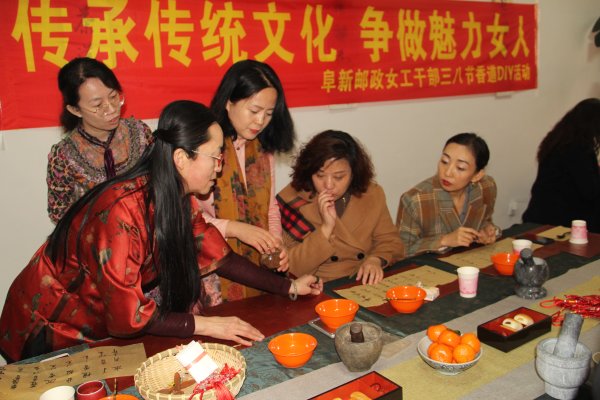 珠絡玲瓏,羅囊閑斗,暗香襲。為慶祝第111個三八國際婦女節(jié),阜新郵政公司舉辦了主題為“傳承傳統(tǒng)文化 爭做魅力女人”的女工干部中華傳統(tǒng)香文化DIY活動。