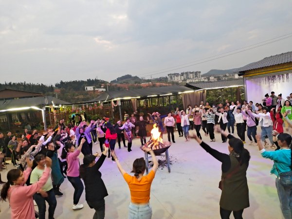 傍晚,伴隨著歡快動感的音樂聲響起,點燃了現(xiàn)場的激情熱浪。大家圍著篝火,把如同火一樣熊熊燃燒的青春融入在這里,用飛揚的歌聲及舞蹈,盡情吟唱、自由狂歡......這熊熊篝火,猶如指引內(nèi)心方向的燈塔。