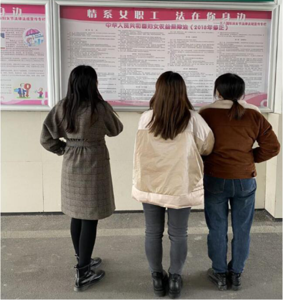 此次活動采取線上和線下相結(jié)合的方式?;幢笔蟹止竟闹谱髁恕睹穹ǖ洹谖寰?婚姻家庭》、《中華人民共和國婦女權(quán)益保障法(2018年修正)》和《安徽省女職工勞動保護(hù)特別規(guī)定》宣傳展板,同時,積極動員職工參加全國職工線上法律知識競賽活動。 宣傳活動開展以來,受到了女職工的關(guān)注和歡迎,讓女職工們認(rèn)識到“學(xué)法、知法、懂法、守法”的重要性,從而進(jìn)一步提高了維權(quán)意識和能力。