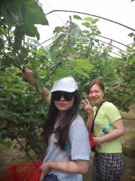 到達(dá)采摘基地果蔬園門口,大家紛紛拿好籃子,興沖沖得進入了溫暖如春的大棚。滿園的桑葚香氣撲鼻而來,通紅的桑葚掛在綠葉叢中,嬌艷欲滴,讓人看著笑逐顏開。處處生機、繁枝累累的果實讓大家興奮不已,個個摩拳擦掌,躍躍欲試。果園里,大家歡聲笑語,相互交流,拍照留念。沐浴著夏日的陽光,徜徉在芳香四溢的果蔬園里,大家領(lǐng)略著迷人的夏景,心情舒暢,體驗親手采摘的快樂。