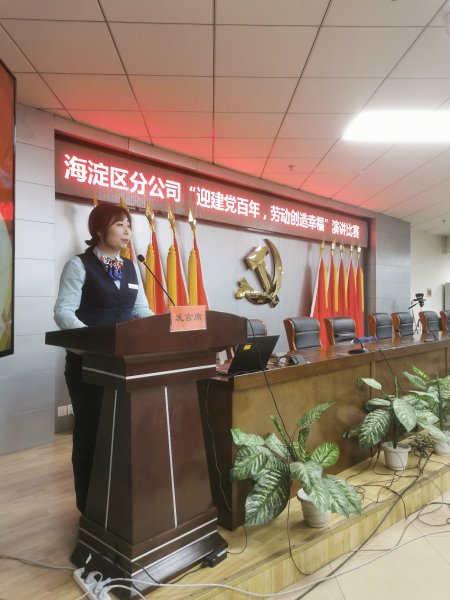 4月12日下午,海淀區(qū)分公司工會(huì)舉辦“迎建黨百年·勞動(dòng)創(chuàng)造幸?!敝黝}演講比賽,由各部門工會(huì)選拔的15名選手參加了本次比賽,其中有包括理財(cái)經(jīng)理、攬投員等各個(gè)崗位的一線職工,還有剛剛步入工作崗位的新職工。