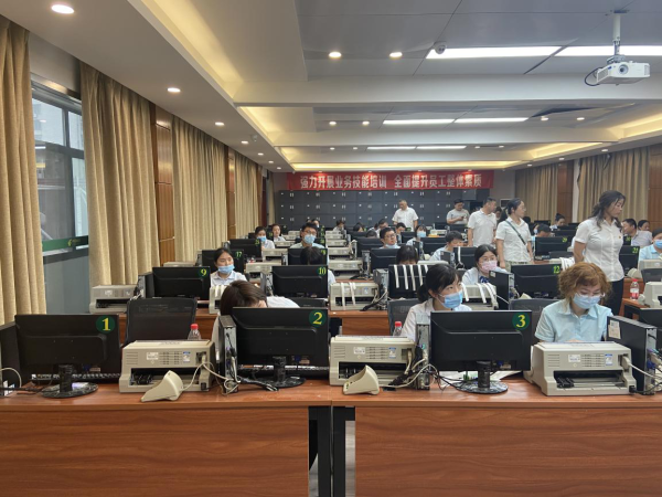 為全面貫徹落實2021年區(qū)分公司工作會精神,進一步提高金融從人員業(yè)務(wù)操作技能和服務(wù)水平,培育和鍛煉高素質(zhì)員工隊伍,樹立“奮斗為尊、爭先為榮”的人才導(dǎo)向,6月29日晚,由荊州區(qū)分公司舉辦的全區(qū)金融從業(yè)人員技能比武活動在市分公司二樓電教室舉行。全區(qū)9個金融網(wǎng)點金融從業(yè)人員同場競技、一展風(fēng)采。此次技能比武共設(shè)立了微機漢字錄入、手工點鈔、加打憑條三個項目的比賽。