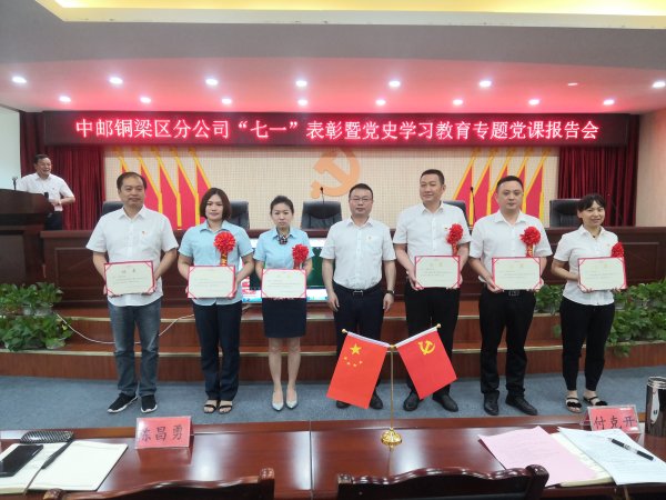 為慶祝偉大的中國共產(chǎn)黨成立100周年,教育引導(dǎo)全體黨員、干部職工在回顧黨史中牢記責(zé)任,在展望未來中激發(fā)動(dòng)力,推動(dòng)銅梁郵政各項(xiàng)工作在新時(shí)代新征程中不斷邁上新臺階,7月3日上午,銅梁區(qū)分公司召開慶祝建黨100周年“七一”表彰暨黨史學(xué)習(xí)教育專題黨課報(bào)告會(huì)。會(huì)議表彰了先進(jìn),黨員莊重宣誓,退休老書記、優(yōu)秀黨員、優(yōu)秀黨務(wù)工作者、青年黨員代表分別做了先進(jìn)事跡宣講,付克開黨委書記以《學(xué)黨史 鑄初心 鑒往知今 砥礪前行》為題就中國共產(chǎn)黨四個(gè)歷史時(shí)期的歷史背景、歷史大事、歷史成就及歷史啟示,為干部職工作了專題黨課輔導(dǎo)。