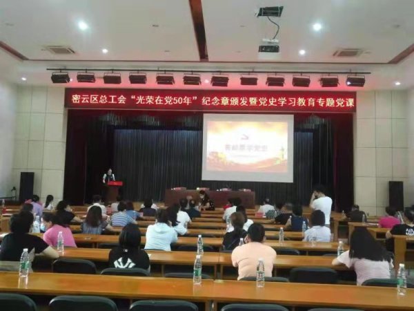 6月28日一早,密云區(qū)分公司工會聯(lián)合區(qū)總工會開展“密云區(qū)總工會“光榮在黨50年”紀念章頒發(fā)暨黨史學習教育專題黨課”主題黨日活動,活動上區(qū)政協(xié)副主席、區(qū)工會主席何麗娟及區(qū)工會機關(guān)60余人參加。
