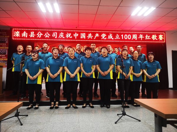 灤南縣郵政分公司內(nèi)燈火輝煌、紅旗招展、歌聲嘹亮,灤南縣分公司11支參賽隊(duì)伍,用一首首紅色經(jīng)典歌曲,贊美建黨100周年的輝煌成就,唱出對(duì)祖國明天的美好祝福。