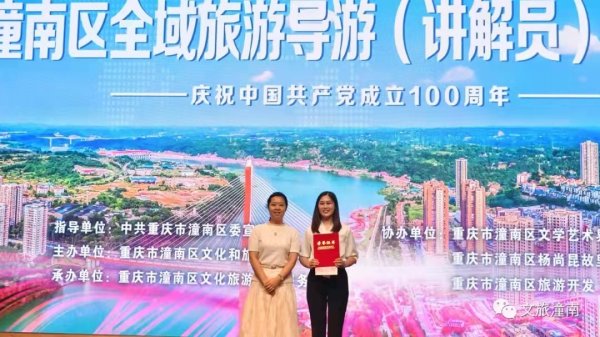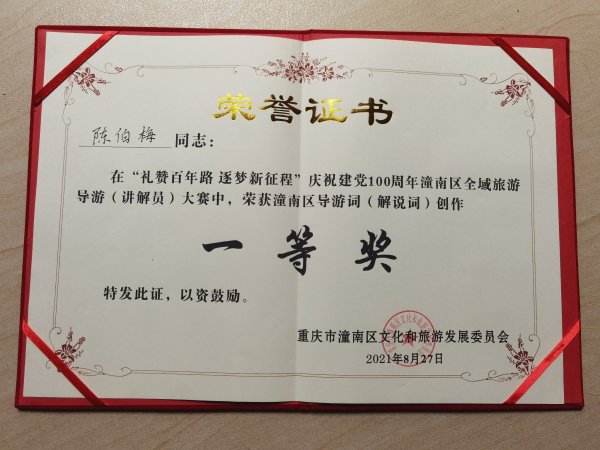 2021年8月27日,潼南區(qū)文化和旅游發(fā)展委員會(huì)舉辦的“禮贊百年路 逐夢(mèng)新征程”慶祝建黨100周年潼南區(qū)全域旅游導(dǎo)游(講解員)大賽勝利落下帷幕,潼南分公司四方郵政所負(fù)責(zé)人陳伯梅獲評(píng)潼南區(qū)導(dǎo)游詞(解說詞)創(chuàng)作一等獎(jiǎng)。