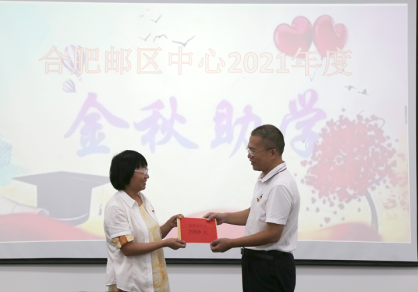 金風送爽,佳音頻傳,在這個滿懷喜悅、收獲成功的季節(jié),9月8日,合肥郵區(qū)中心舉行了2021年金秋助學金發(fā)放儀式,該中心工會主席出席了活動儀式,向今年有子女參加高考并被錄取的會員表示衷心的祝福并發(fā)放了“金秋助學金”,同時提出兩個希望,一是希望大家繼續(xù)樹好家風,教育子女在人生的新階段要樹立正確的人生觀價值觀,不斷取得優(yōu)異成績,使自己成為國家未來的棟梁,為祖國的繁榮昌盛貢獻自己最大的力量。二是希望大家作為郵政員工,要始終關心重視企業(yè)的發(fā)展,立足崗位敬業(yè)奉獻,與企業(yè)實現(xiàn)共贏。