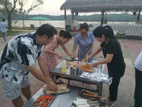 套圈活動(dòng)結(jié)束后,緊接著燒烤活動(dòng)開始了。10余個(gè)烤爐全部開啟,每個(gè)烤爐前都圍著一些員工,有調(diào)火的,有調(diào)味的,香味彌漫,烤肉和烤腸讓人垂涎欲滴。大家游走各個(gè)烤爐間品嘗著美味,食物烤熟后馬上就被一搶而空。為了趕上大家吃的速度,燒烤大師們一個(gè)個(gè)都卯足了勁。