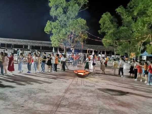 隨后,主持人召集大家上臺(tái)做搶凳子的小游戲,每輪10人參加,將9個(gè)板凳圍成一圈,10個(gè)參賽者跟著音樂按順時(shí)針方向圍繞板凳轉(zhuǎn)圈,音樂聲停,迅速搶占一個(gè)板凳坐下,沒有搶到板凳的人被淘汰,并抽掉一個(gè)凳子繼續(xù),直到剩余最后1人為勝出者。有的員工音樂還沒停就習(xí)慣性坐下來,有的員工音樂停了還在轉(zhuǎn)圈,不知道去哪神游了,引來一片歡笑聲。最后,大家借著皎潔的月光,踩著歡快的節(jié)拍,圍著篝火跳起了兔子舞,篝火晚會(huì)將現(xiàn)場氣氛推向了新的高潮。