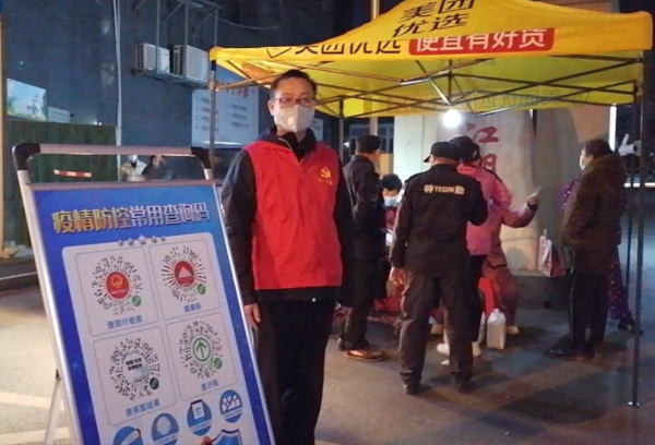 11月4日晚,第一輪核酸檢測(cè)開(kāi)始后,賀進(jìn)立即主動(dòng)請(qǐng)纓與社區(qū)聯(lián)系參與疫情防控工作,協(xié)助社區(qū)開(kāi)展核酸檢測(cè)信息登記、執(zhí)勤值守、現(xiàn)場(chǎng)秩序維護(hù)、幫助查驗(yàn)居民健康碼、核對(duì)身份信息等工作。特別是針對(duì)行動(dòng)不便的老人和孕婦,社區(qū)卡點(diǎn)開(kāi)通了綠色通道,他主動(dòng)靠前服務(wù),“請(qǐng)大家保持間隔一米,有序排隊(duì),提前準(zhǔn)備好健康碼……”排隊(duì)的大家都能看到那個(gè)穿著紅色志愿者衣服的人,耐心細(xì)心地做好核酸信息采集工作。除了幫助社區(qū)開(kāi)展核酸檢測(cè),他還承擔(dān)了社區(qū)進(jìn)出的登記工作。他用他的身影筑起了“紅色防線”,讓黨旗在一線高高飄揚(yáng)!